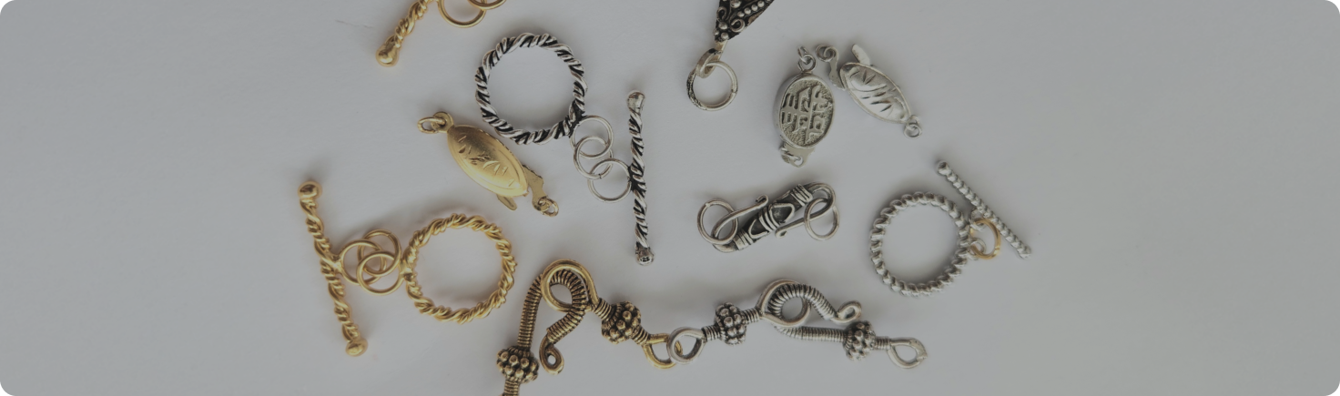 I use a variety of clasps - box clasps, lobster clasps, trigger clasps, toggle clasps and hook and ring clasps although I favour toggle clasps more. Most of the clasps used are either silver, or gold-plated silver. The non-silver metal clasps are also of good quality and similar to ones that I have used in necklaces in my personal collection over the years. The particular clasp I choose is often dictated by the design of the necklace, and often, its weight.