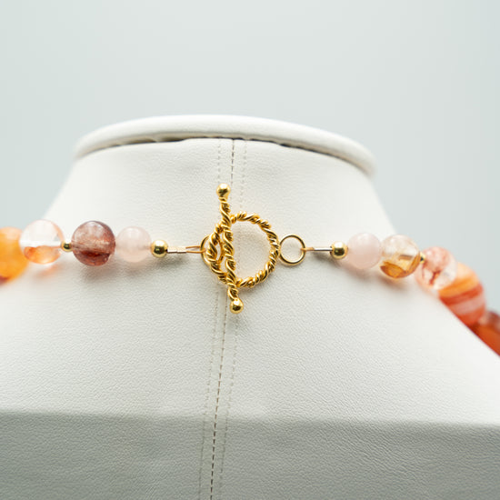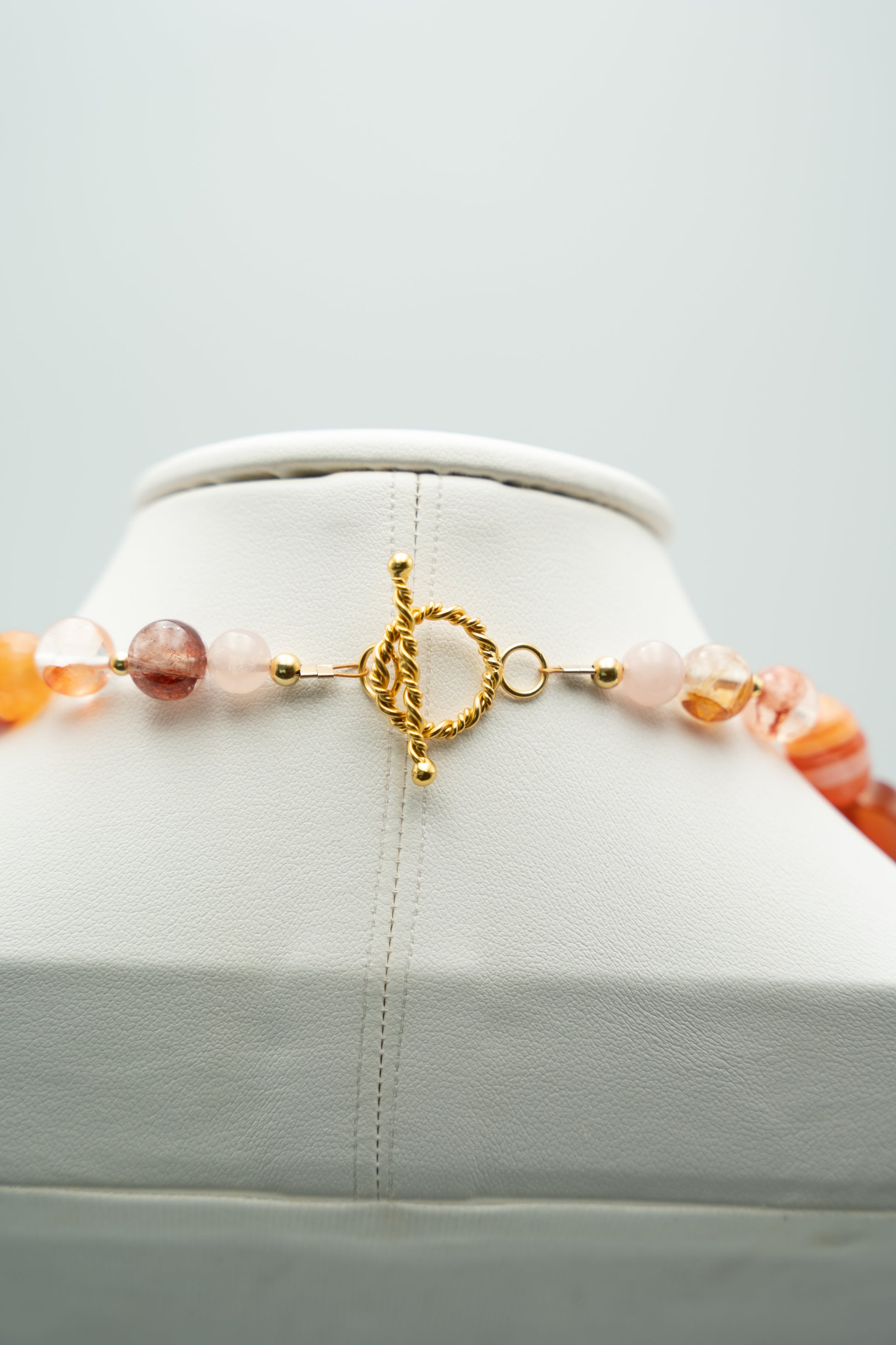 Through Thick encapsulates warmth and vitality through the agates on the one hand, but the garnet and the pale rose quartz also captures depth and a quiet glow! I love the pairing – it feels like a celebration of balance and companionship, of shared journeys…